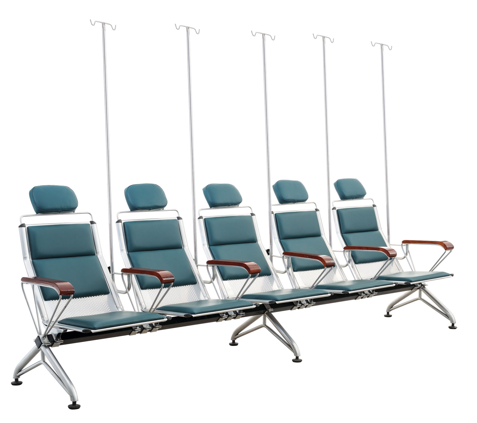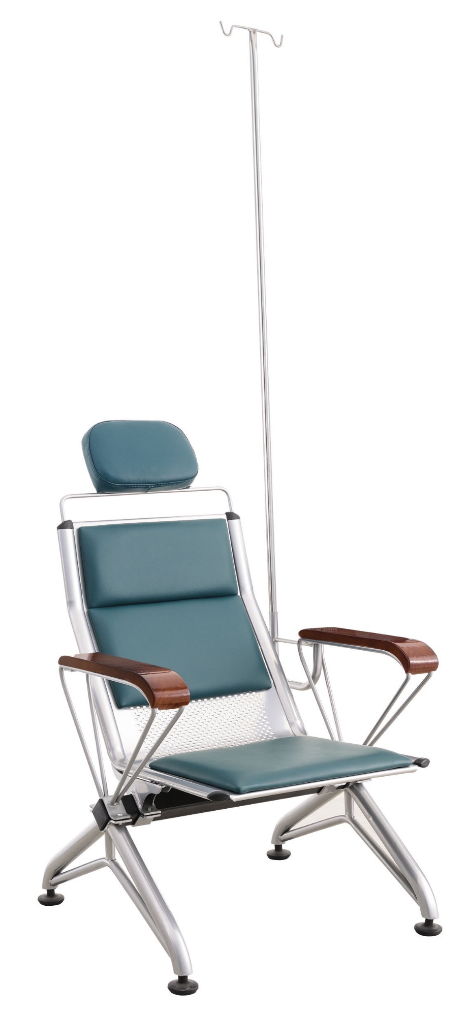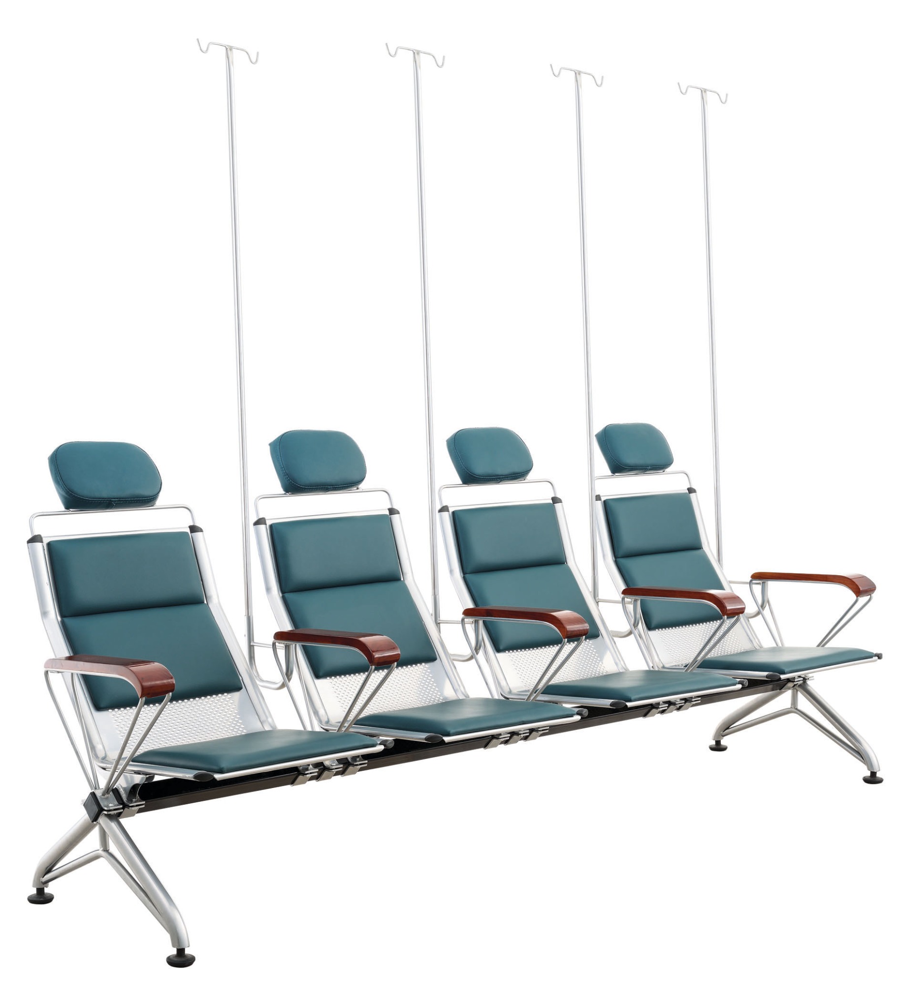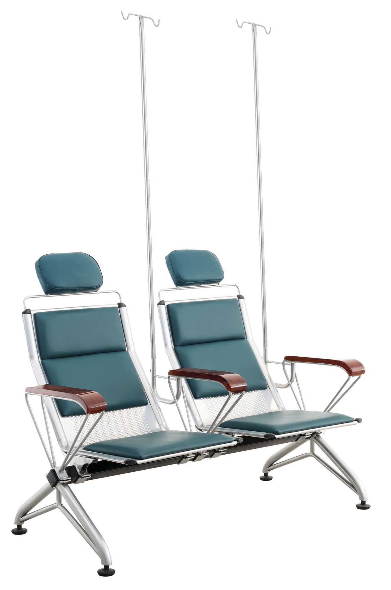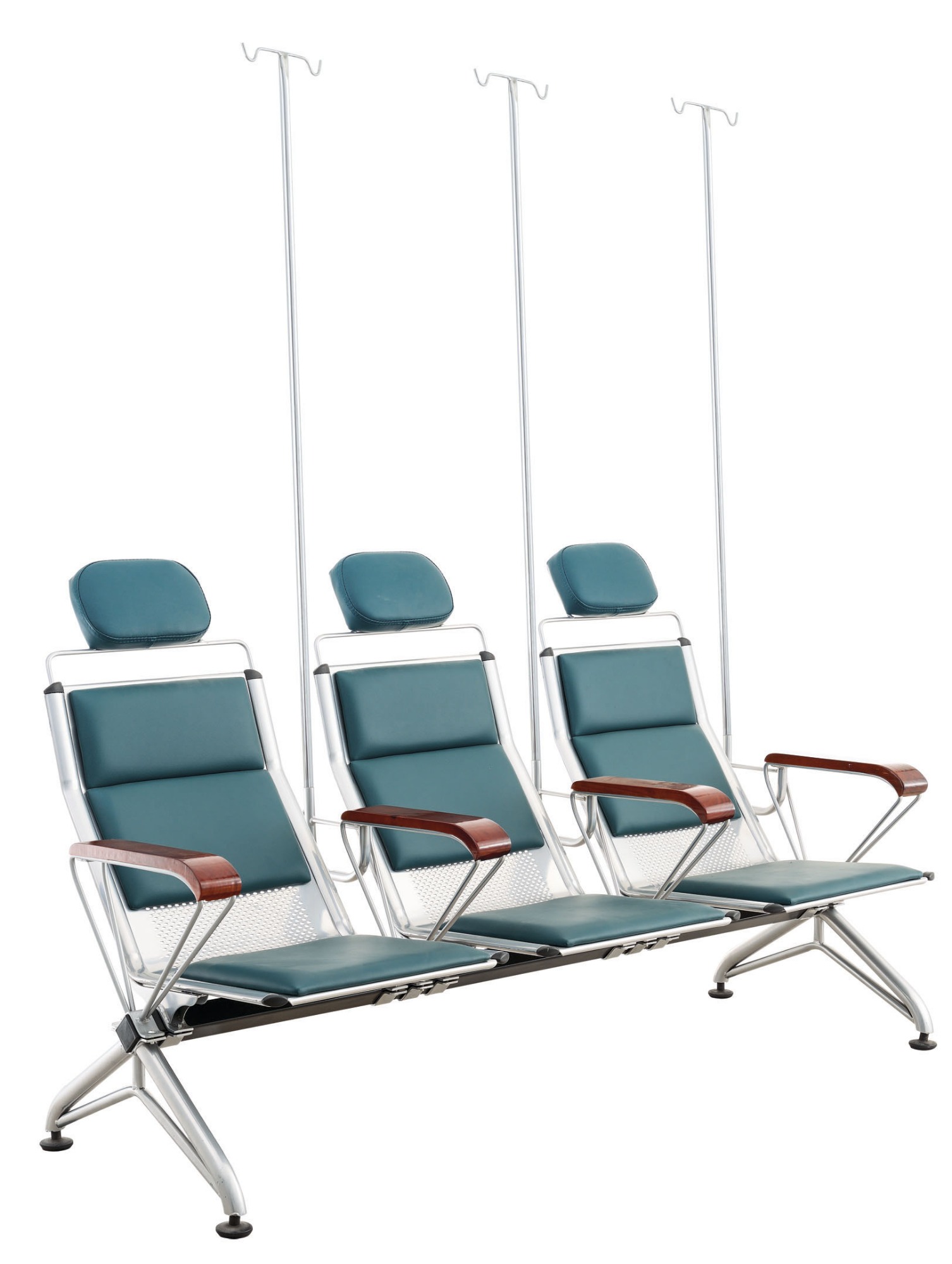 1. 扶手架:采用12厘實心拉元管折彎而成,爆接U型插輸液桿管,打磨拋光處理后通過除油、除銹、磷化、綜合、表調等前置處理,經過高溫烘干爐烘烤后靜電噴涂粉體,再進入高溫爐定時使表面粉體流平固化,用專用V型夾子固定,結實不易移動。